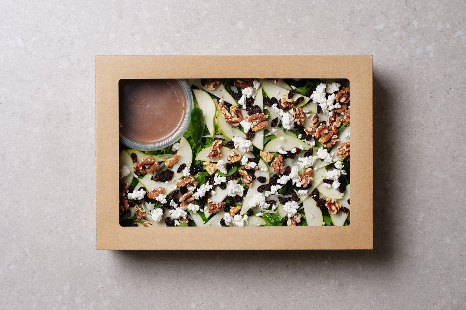 Rocket, spinach, pear, pickled fennel, sultanas, feta and roasted walnuts served with a balsamic vinaigrette